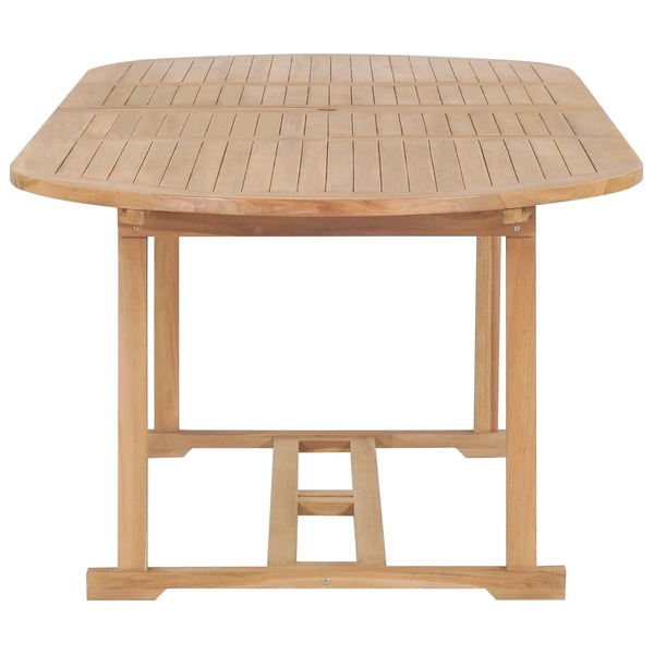 This extendable wooden garden table is ideal for outdoor use. It will be the focal point of your garden, terrace or patio. Thanks to its double extension pieces, this dining table can be extended from 180 to 230 or up to 280 cm in length when extra space is required. Constructed from extremely durable teak hard wood, this piece of teak furniture has been seasoned, kiln dried and then fine sanded to give a very smooth appearance. Teak wood is known for its exceptional strength and weather resistance, making it far more suitable for garden furniture than any other kind of wood. Teak wood is the perfect choice if you want to purchase a long lasting piece of garden furniture. Meanwhile, it can also resist moisture and insects. Due to its sturdy structure, this furniture is very safe and durable. Furthermore, it will also provide you with comfort and great convenience to spend a pleasant time with your family and friends. Besides, this table has a hole so that an umbrella can be installed. The outdoor dining table is easy to assemble.