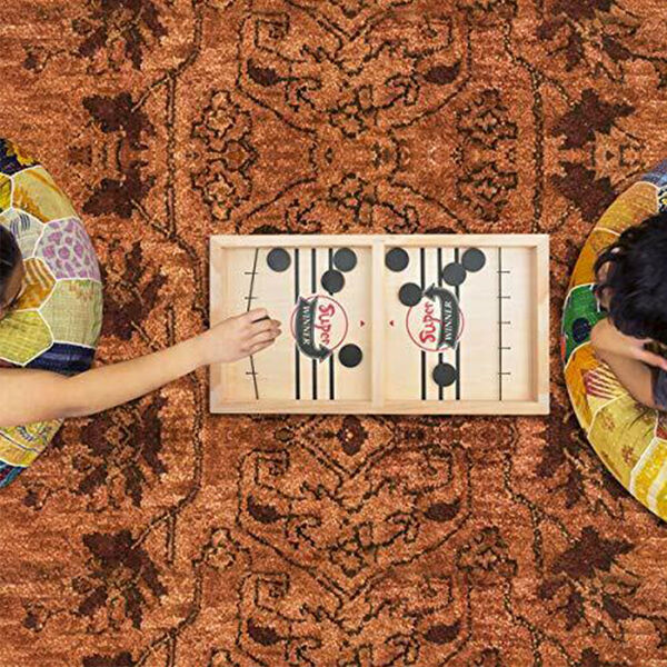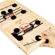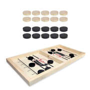 - Easy to play: Start the game and place five pucks on each side of the board. Slide both ends of the elastic band into the side grooves so that they snap into place. The two players applauded the "High Ten" style to start the game. The player uses an elastic band to launch the puck from the door until there is no puck next to it. Players don't turn, they just refill and shoot as fast as possible. Whoever clears the board first wins