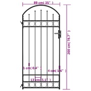 This garden gate will make a contemporarily styled, practical entryway to seclude your garden from the outside world. Highly stable and durable, the fence gate will form a practical security barrier for your garden, patio or terrace. With its elegant, arched top design and strong horizontal braces to reinforce the frame, our garden gate will provide a high degree of security, while forming a fabulous entryway onto your property. Manufactured from heavy-duty steel, the gate is powder-coated against rust and corrosion. This gate comes with sturdy hinges for easy installation, and a heavy-duty locking system with three matching keys is also included in delivery. This garden gate is a great combination of style, strength, stability and corrosion resistance!