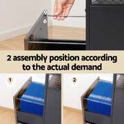 Organise your office with the Filing Cabinet featuring rustic wood finish and smooth-rolling lockable wheels. This 2-drawer file cabinet offers secure storage with locking mechanism, while the 75kg-capacity top shelf provides extra space. Adjustable hanging folders accommodate various file sizes, and matte black handles add sleek style. Its sturdy steel frame ensures durability for home or office use.