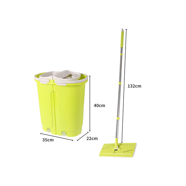 Tired of washing traditional mop after mopping? Our Mop and Bucket Set releases your from heavy chores, say goodbye to hand wash. 100% Microfibre mopping head provide a superior cleaning process. Hook-and-loop flat mop head save you from intertwined mop head irritations. Dry mopping traps dust particles and grime; Wet mopping absorbs liquid quickly. 360?Rotatable head cleans corner or under furniture area effectively. Bucket are divided into two sides for drying and washing. It can also be detachable for easy cleaning. Stainless steel wringer features a heavy-duty and tough performance. Fast spin action for effortless drying. Quality details such as drain valve, retractable handle and lifting handle make it better than others. Clean dust, hair or dirt easier by today!