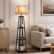 Floor Lamp With Fabric Shade Reading Light And Display Shelf Home Décor