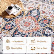 Transform your home with the Bohemian Rug. This large area rug features a stunning vintage distressed design and vibrant multicoloured pattern. Made from durable polyester, its ultra-thin 5mm low-profile pile is easy to clean and feels soft underfoot. The machine washable design, combined with its stain-resistant and fade-resistant properties, ensures lasting beauty. Complete with an anti-slip backing, this versatile floor rug is the perfect way to add character and warmth to your living room, bedroom, or entrance.