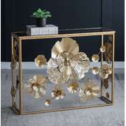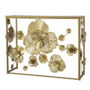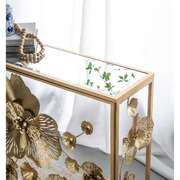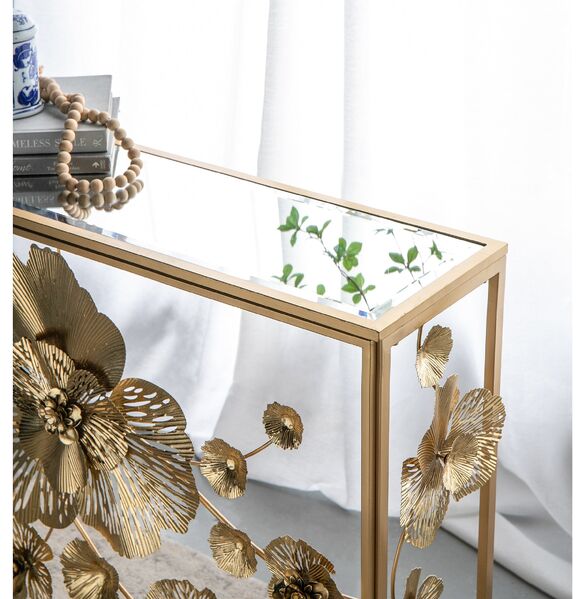 Perfectly suited to Art Deco inspired interiors, our Mirrored Console Table will make a stunning addition to your home. The table is made from a sturdy rectangular metal structure, which has been painted with a matte gold finish. A panel of mirrored glass makes up the table top. A truly distinctive piece, with 3D florals spread across both the front and sides, this is a coveted piece of furniture that will adorn your home for years to come.