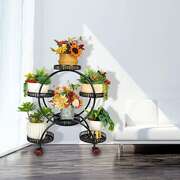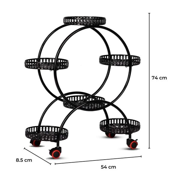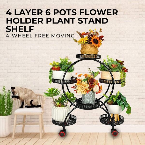 4 Layer 6 Pots Flower Holder Plant Stand Shelf With 4-Wheel (Black)