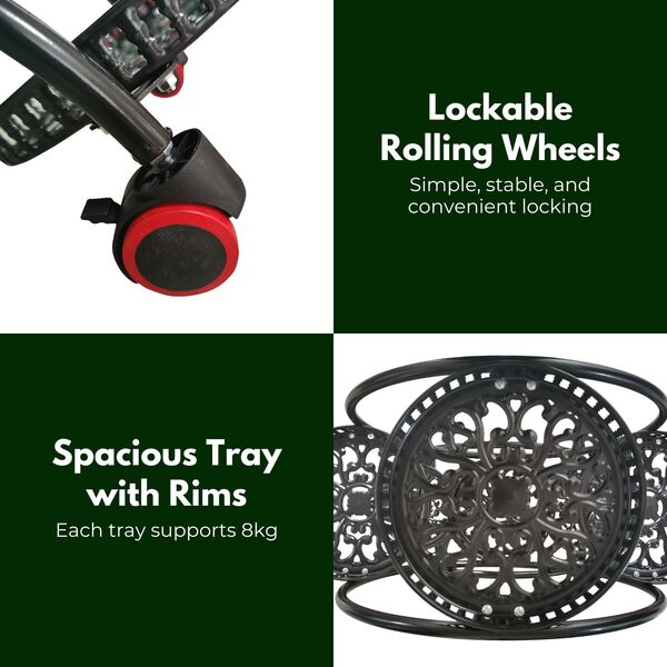 Secure and Stable: For added stability and convenience, the product includes brake wheels, enabling you to fix the flower pot securely in the desired place. This ensures that your plants remain exactly where you want them.