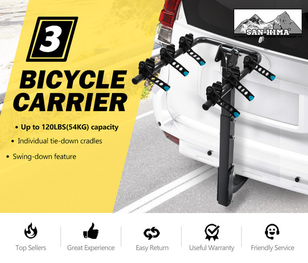 Foldable 3 Bicycle Carrier Bike Car Rear Rack