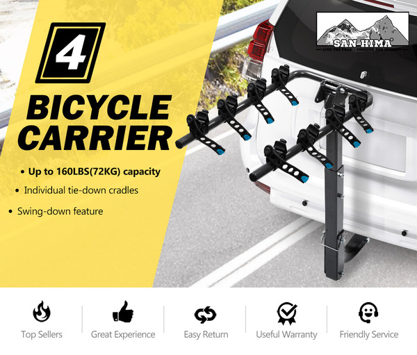 Foldable 4 Bicycle Carrier Bike Car Rear Rack