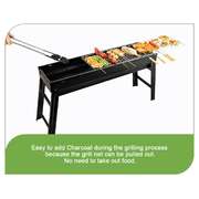 Compact and portable Charcoal Barbecue grill.This BBQ makes it easy to enjoy your favourite barbecued foods when you're out and about. It is made from strong Cast Iron construction that has a foldable, sturdy legs and handle that add to the overall robust design. The design has a deep base with wide grill tray so there's plenty of room for steak, chops and sausages. This barbecue is perfect for festivals, beach camping trips or even your own backyard thanks to its size and design. It comes with chrome steel grill so it can cook a wide range of meats, fish and vegetables