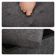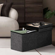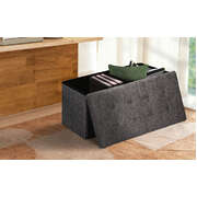With a padded lid and tufted fabric, it doubles as a comfy seat or footrest. The lid also flips halfway to create a flat tabletop surface - ideal for books or decorative pieces.