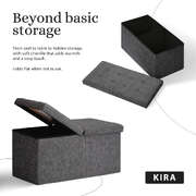 Foldable storage ottoman - flip lid side table toy blanket organiser seat kira black