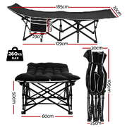 Folding Bed With Mattress Heavy Duty Black 185Cm Fabric Upholstery