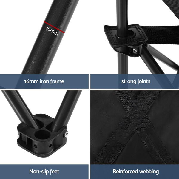 Folding Camping Moon Chair Portable Seat 120kg Capacity Black