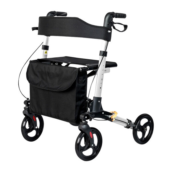Equipped with built-in adjustable handles, finding the right handle height for you is a breeze, ensuring utmost comfort and proper posture alignment. It also features smooth 20cm wheels, allowing you to effortlessly glide over different surfaces. As safety is our main priority, this rollator walker includes double brakes for enhanced stability and control, giving you peace of mind as you navigate both indoor and outdoor environments with ease.