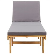 Sit back, drift away, and enjoy a wonderful relaxing time with our folding sun lounger! This quality sunbed is a perfect combination of style and functionality, which is ideal for relaxing near the swimming pool, at your balcony, on your patio or at the campsite during your holiday or leisure time! Made of solid acacia wood, this sunbed is easy to clean, hard-wearing and suitable for daily use. Standing out with the folding design, the sunlounger can be pulled up and adjusted in 4 different heights for the most comfortable seating or lying positions. You can also fold it up for easy storage when it is not in use. The thickly padded cushion will provide the ultimate comfort and added support. Thanks to the zipped design, the cushion cover is removable for easy washing.