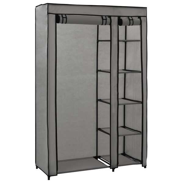 Our folding wardrobe provides you a handy storage solution which helps you organize your favourite garments neatly and efficiently. It is suitable to be placed in the basement, bedroom, the attic, or as a portable wardrobe for camping activities. Your clothes will always be kept very well. Its foldable design makes it space-saving and easy to assemble. The rolled-up door is attached with hook and loop fasteners, protecting your clothes from dust and dirt. The zippers are easy to open and close. The wardrobe cover is made of fleece fabric and the frame is made of steel tubes.