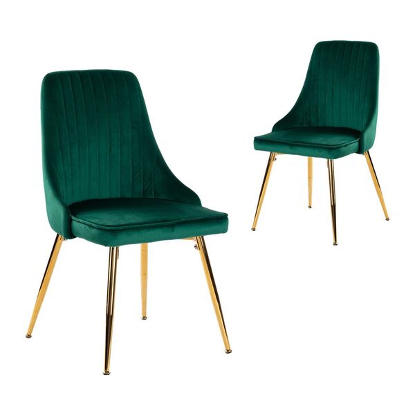 Forever Set Of 2 Green Velvet Dining Chairs-Art Deco Design
