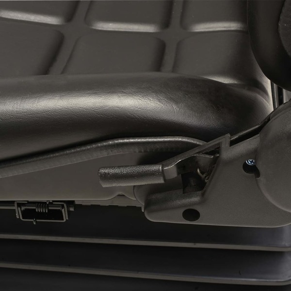 This high-quality tractor seat can also be used as a forklift seat. It has a strong steel frame and is upholstered in durable and water-resistant PVC material. Its thickly-padded seat and adjustable backrest will ensure you can work on your tractor or forklift in the utmost comfort. The seat is designed to accommodate user weights from 50 to 130 kg by adjusting the knob on the base. It has a heavy-duty suspension that helps absorb the shocks on rough terrain, ensuring the smoothest ride imaginable on your tractor or forklift. This seat is also equipped with sliding tracks that make it easy and convenient to move forwards or backwards over a range of 150 mm and the backrest is adjustable from 60° to 150°, so you can always find the most comfortable position. Installation is easy.