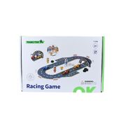 Specification:Dense cardboard racing track 10 pcs, straight measures approx 24 x 9cm. Wooden racing car measures 9x 3.5 x 3.5cm