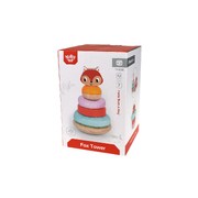 Traditional stacking tower with a modern colourful twist! This wooden stacker comes with a solid base and four round stacking discs, where the child can thread onto the central post. Children can explore mixing up the rings, learning about sizes, color combinations and design. Develops motor skills and hand-eye coordination. Made from high quality wood and non-toxic paint.