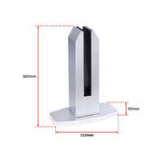 This durable, weather-resistant spigot is made from a high quality anodised aluminum alloy. It measures 132 x 60 mm (L x W), with bolt holes measuring 16 x 13 mm. The spigot is designed expressly for the do-it-yourselfer, and no holes are required in the glass. The glass is gripped by the rubber grip sleeve which lines the interior of the spigot. Installation is easy, and an allen key as well as a cover plate for the bolts are included.