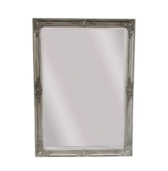 The French Provincial Ornate Mirror in Antique Silver - Small 80cm x 110cm is a beautiful and elegant addition to any home decor. The mirror measures 80cm x 110cm and is made from high-quality materials, including wood and mirror.