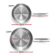 Frying Pan Stainless Steel Uncoated Twin Frypan Set 25/30cm Silver