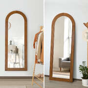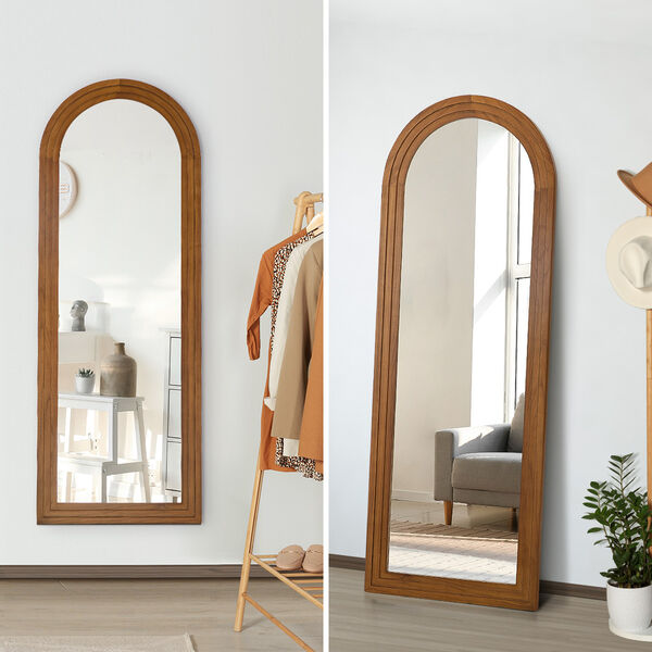 Full Length Arch Mirror 165x60cm Brown Wood Wall Mounted