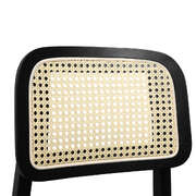Functional Dining Chair Wood Rattan Armless Black x6 - Easy Assembly