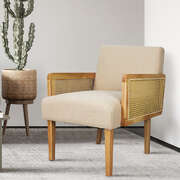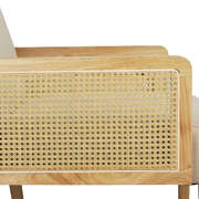 Material: Rubber wood, PE rattan, Polyester linen fabric, 50D foam