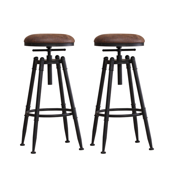 2x Brown Bar Stools PU Leather Swivel Adjustable Gas Lift Counter Chairs