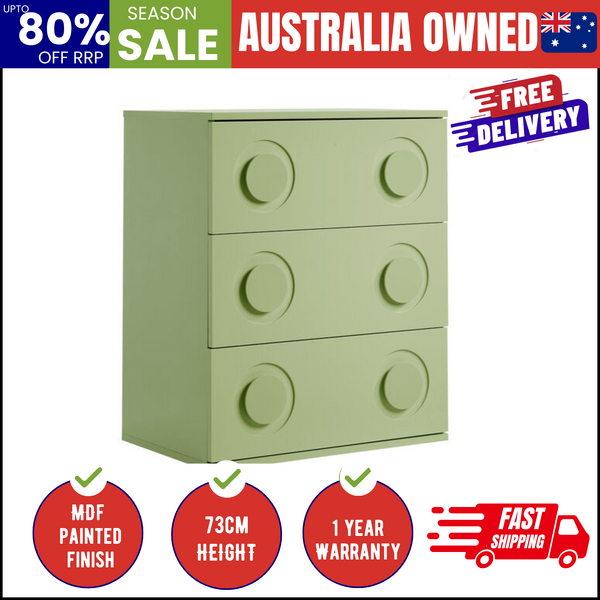 3 Drawer Chest Cabinet Bedroom Dresser Storage Nightstand Green