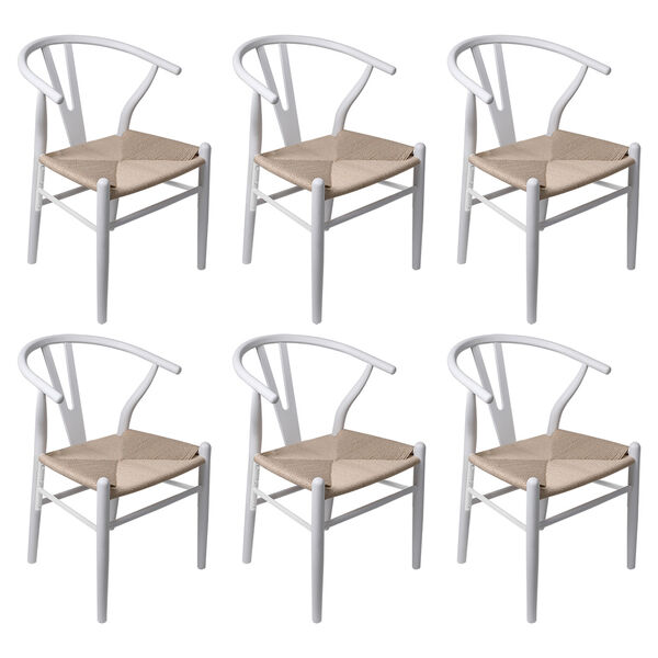 1 Set of 6 Dining Chairs Wooden Rattan Seat Wishbone Back