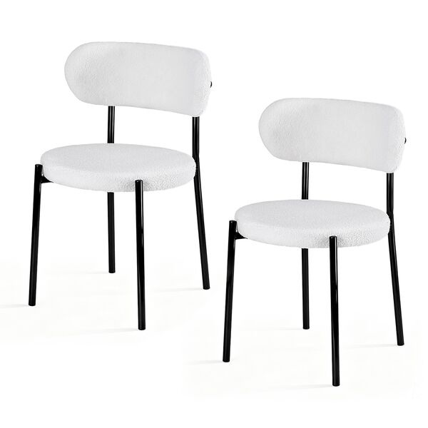 Dining Chairs Set Of 2 Sherpa Boucle White Fabric Upholstery King