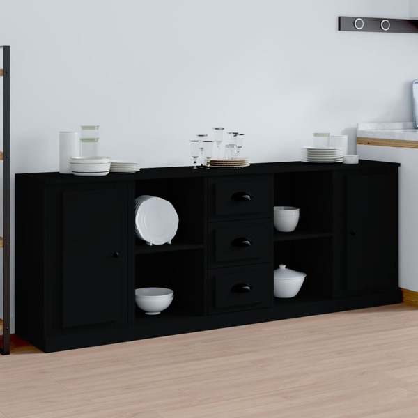 Elegant 3-Piece Black Engineered Wood Sideboard Set