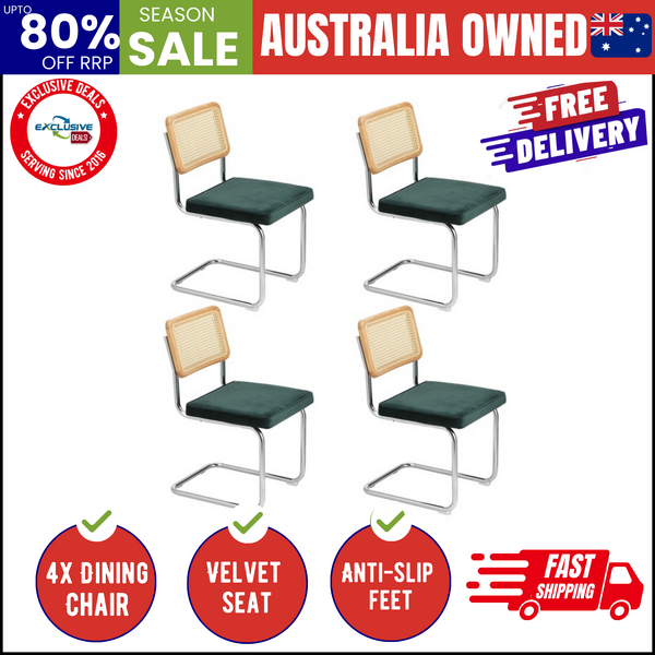 4x Solid Rubber Wood Dining Chairs White Velvet Kitchen Dinner Chair