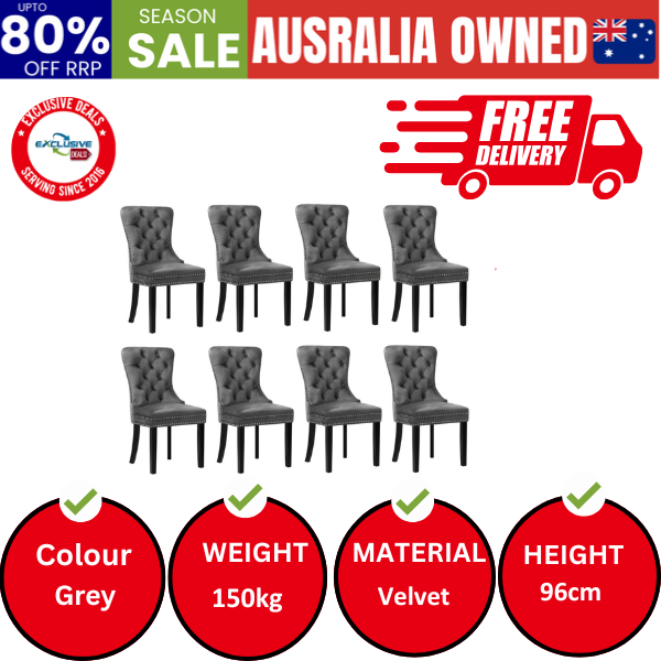 8x Velvet Dining Chairs Upholstered French Provincial Tufted Grey