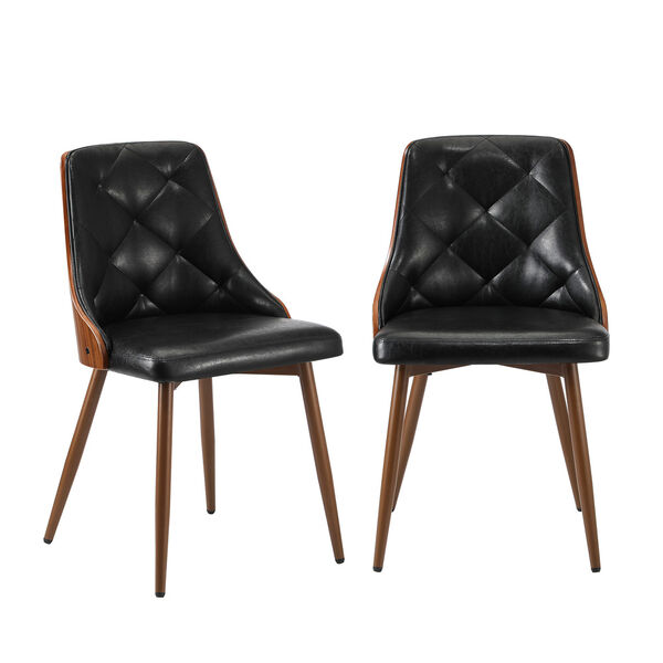Set of 2 Retro PU Leather Dining Chairs Black for Kitchen or Dining Room
