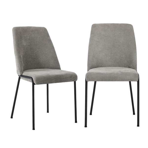 Set of 2 Dining Chairs Chenille Fabric Upholstered Padded Seat Grey