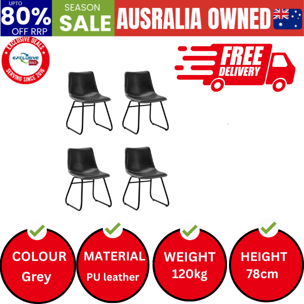 4x Dining Chairs Kitchen Table Chair Lounge Retro Padded Seat PU Grey