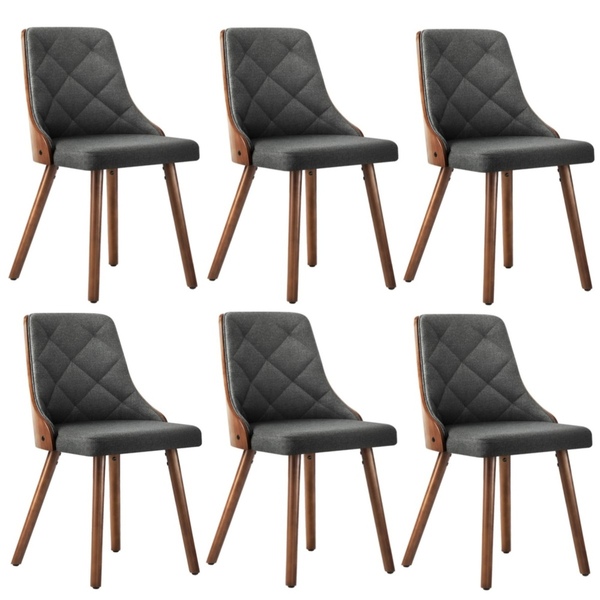 Dining Chairs Wooden Chair Kitchen Cafe Linen fabric Padded Seatx6