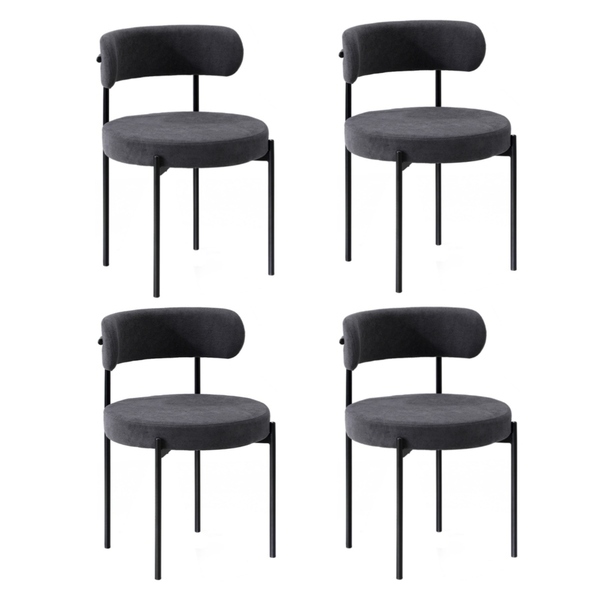 4x Dining Chair Round Boucle Kitchen Lounge Seats Backrest Dark Grey