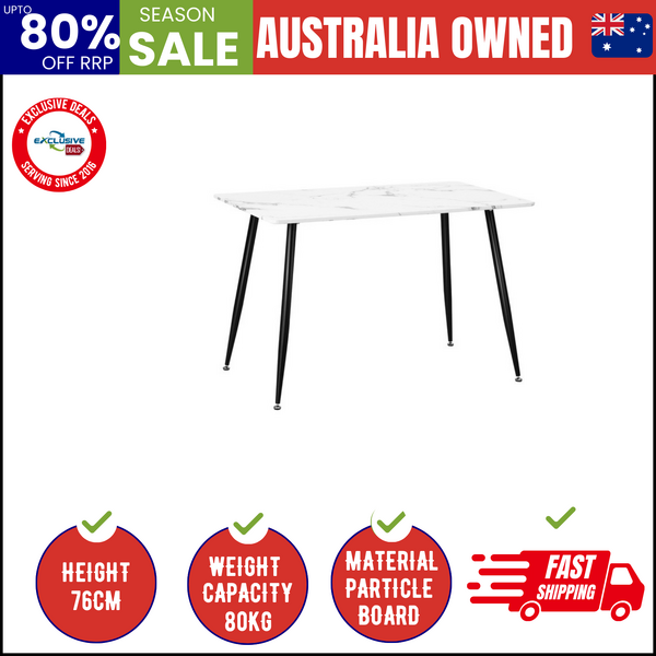 120cm Dining Table Rectangle Wooden Table With Marble Effect Metal Legs