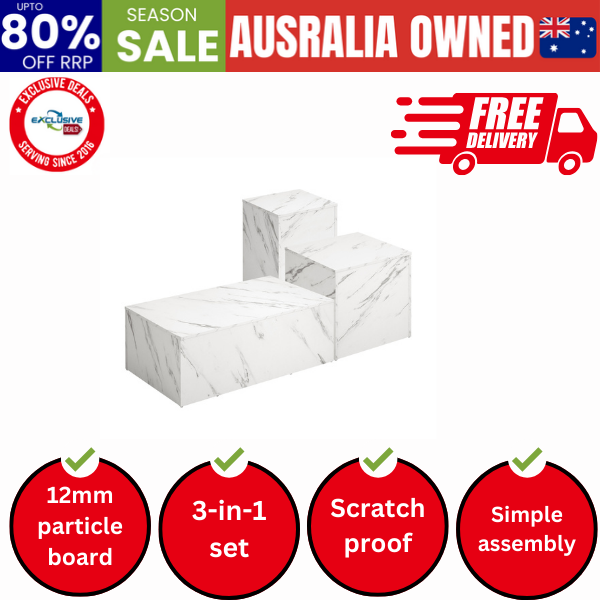 Coffee Table Set of 3 Side Tables Marble Effect White