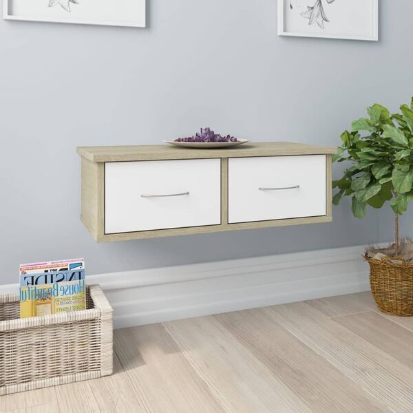 Wall-mounted Drawer Shelf White and Sonoma Oak Chipboard