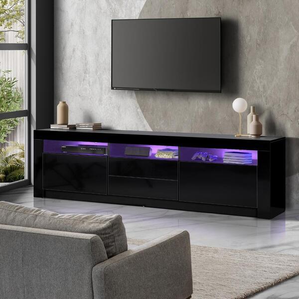 TV Cabinet Entertainment Unit Stand RGB LED Gloss Furniture Black 220cm