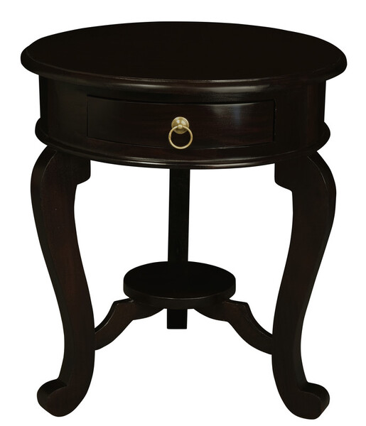 Round Cabriole Leg 1 Drawer Lamp Table (Light Pecan)