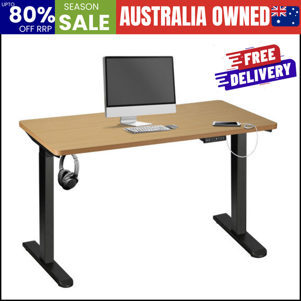 Electric Standing Desk 140CM Single Motor Black & Oak Adjustable Office Table