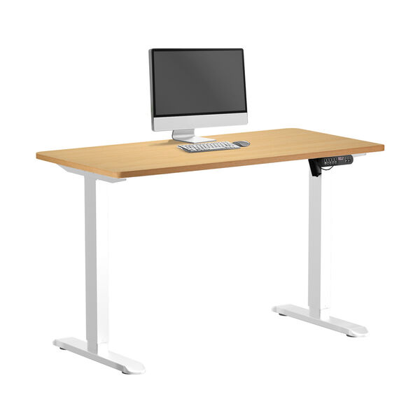 Electric Standing Desk 140CM Single Motor White & Oak Adjustable Office Table