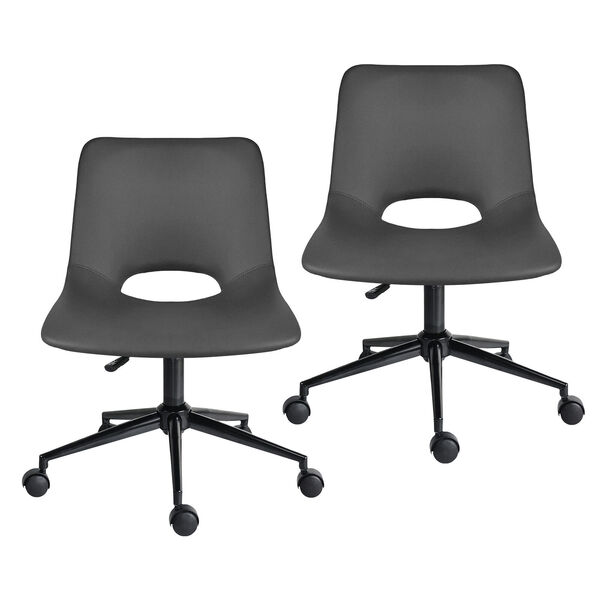 2 set office desk chair - pu leather home swivel chair cut-out seat halo grey
